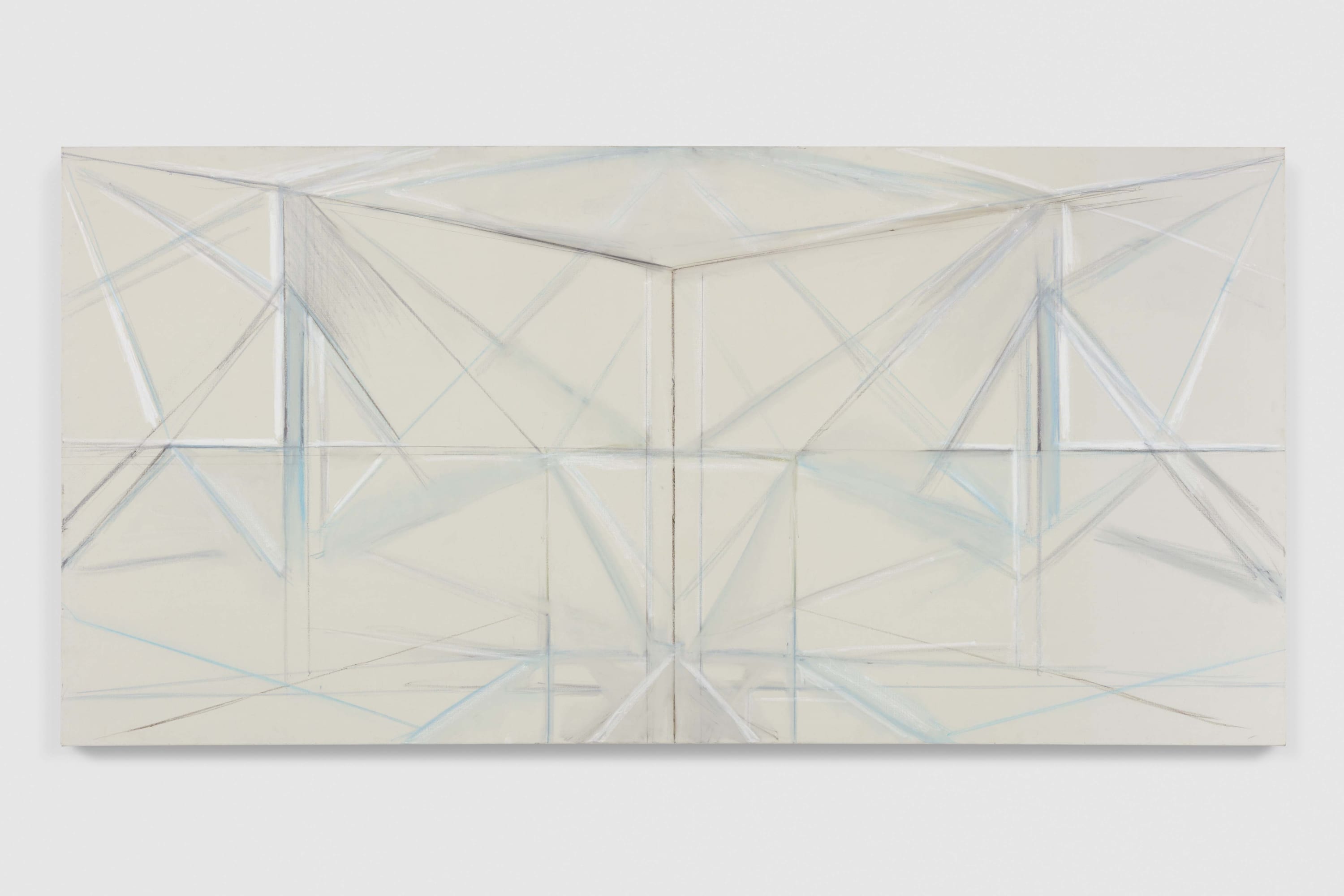 As a member of the New York School who was trained among the European avant-garde, Sterne created a pioneering body of work through restless visual investigation. Her seven-decade career cemented her role as one of the leading 20th century abstractionists. This series of paintings and drawings represents a critical development in the artist’s dynamic oeuvre. Following her work in the 1970s, which explored the implied tension between points (a tension she likened to the magnetism between the stars of a constellation) Sterne spent the last two decades of the millennium utilizing line to make these tensions explicit. Geometric paintings and drawings became their own interior space through Sterne’s play with the meditative properties of line, perspective, space, and light. Sterne described works of this period as both “Patterns of Thought” and “Architecture of the Mind” – a nod to their subject, an imagined three-dimensional space. Overlapping geometric forms harken back to her iconic abstracted cityscapes of the 1940s and 50s, a self-reference that underscores Sterne’s nomenclature “Architecture of the Mind.” The portrayal of internal thought through external geometry accentuates a central tenet for her career: the visualization of the liminal.